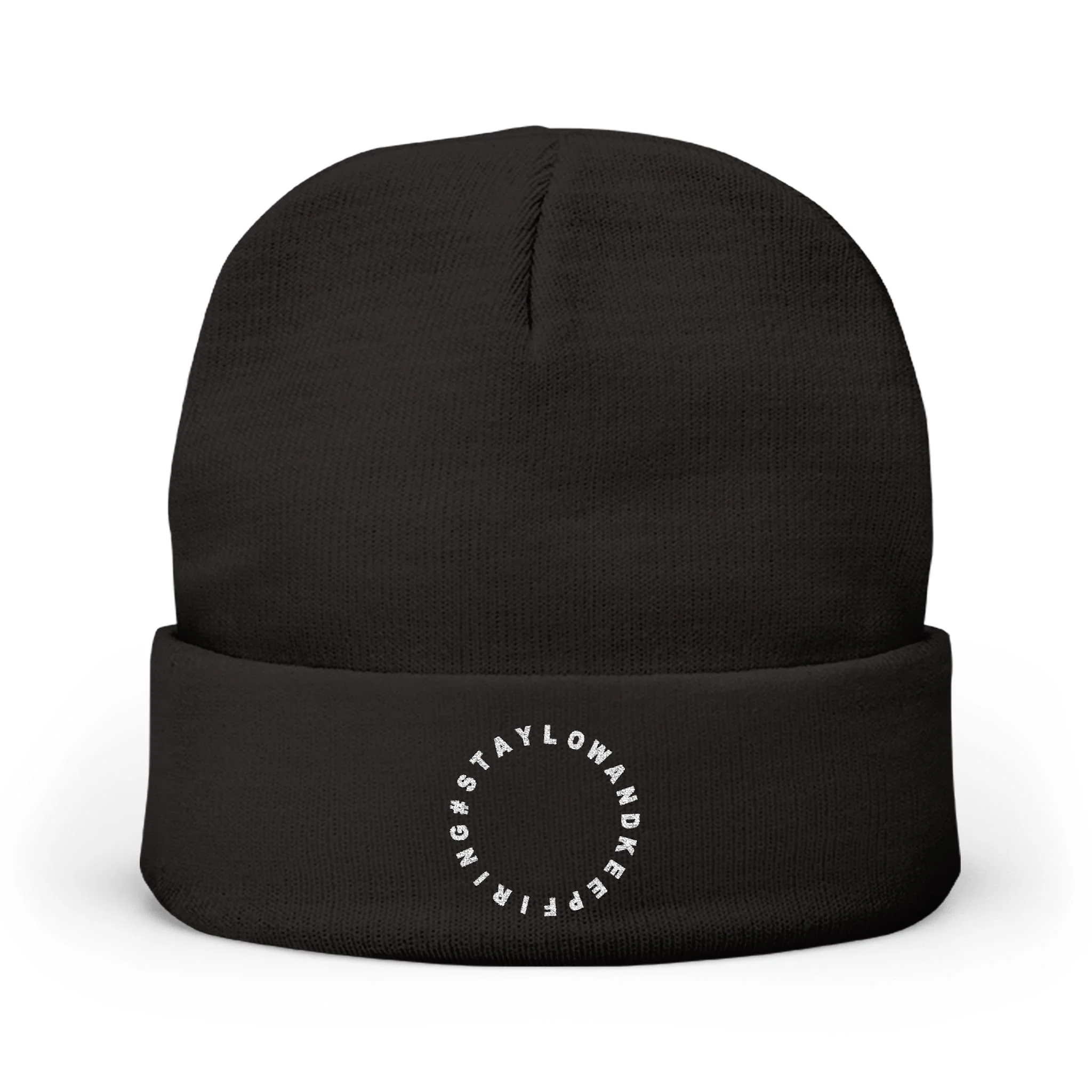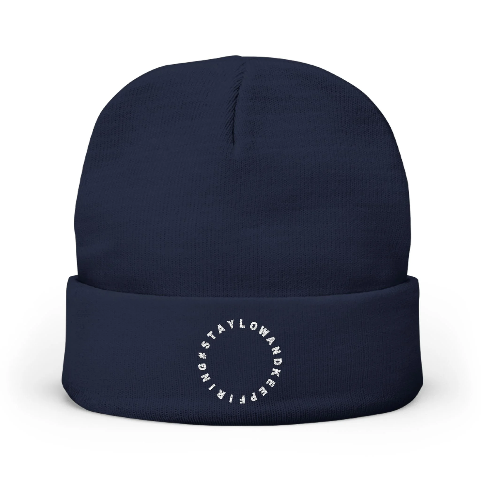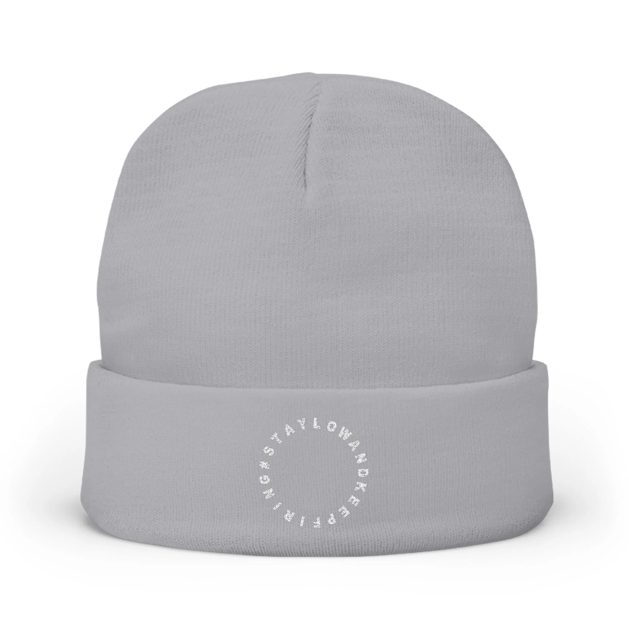 Embroidered Circle Logo Knit Beanie — Minimal Winter Hat